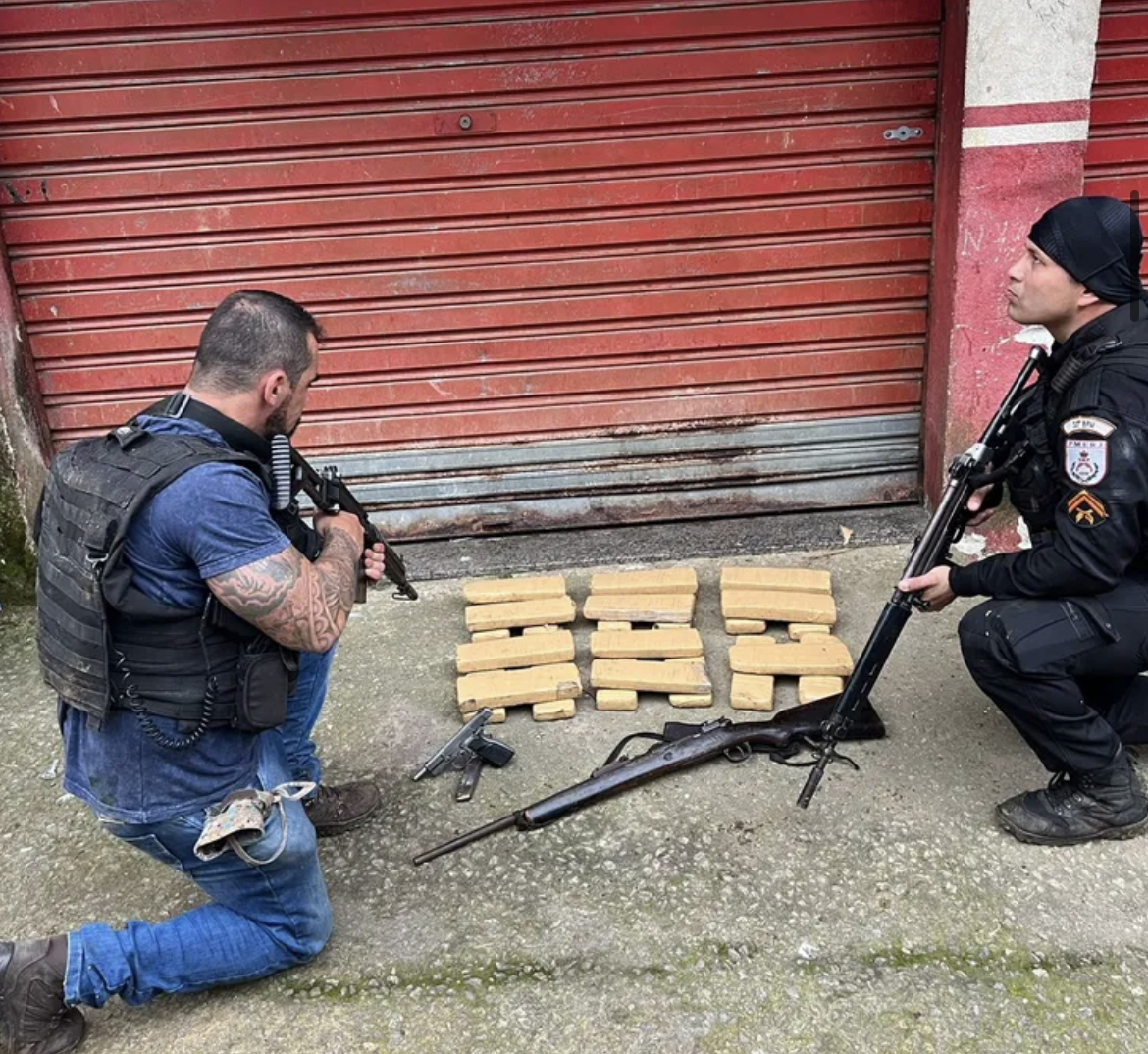 Assim que o tiroteio terminou, um homem baleado foi encontrado caído no chão. Ainda de acordo com o PM, ele estava com um fuzil 762 e uma pistola 9 mm. Também foram apreendidos 23 tabletes de maconha.