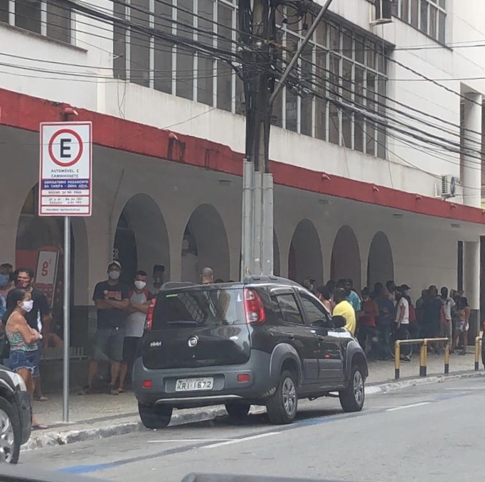 As cinco agências da Caixa que abriram neste sábado (19) já registram filas antes do banco abrir. Em Volta Redonda, por exemplo, a fila atravessa o quarteirão da Vila Santa Cecília. A agência do bairro é a única que abre na maior cidade da região.