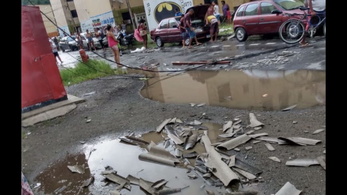 Rajada de ventos e um rápida chuva causaram transtornos na tarde desta quinta-feira (19), aos moradores do condomínio “Minha Casa Minha Vida” do bairro Três Poços, em Volta Redonda