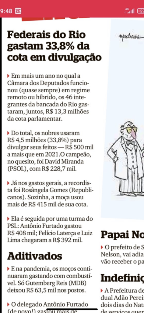 Furtado, que é do Rio e se elegeu com 100 mil votos do Sul Fluminense na onda dos bolsonaristas, está na lista dos que mais consumiram o dinheiro público. O delegado ocupa o segundo lugar entre os 46 parlamentares fluminense na Câmara Federal.