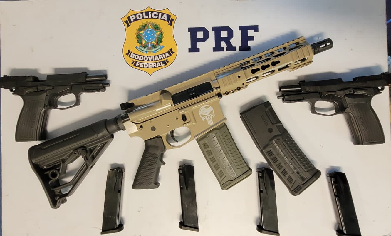 As informações são da Polícia Rodoviária Federal. Segundo os agentes, foram apreendidos um fuzil de assalto colt calibre 5.56 e duas pistolas de fabricação argentina, calibre 9 milímetros. Cada arma possuía dois carregadores.