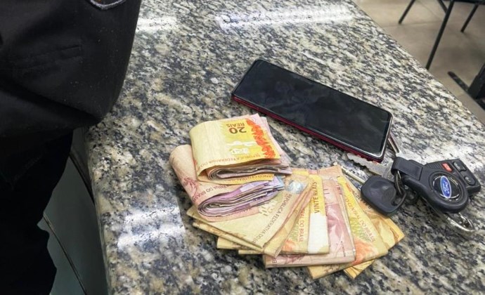 Sobre o dinheiro, o preso não conseguiu explicar a origem e admitiu ter comprado o telefone por um valor muito abaixo do de mercado. O dono do aparelho foi localizado e confirmou o furto.