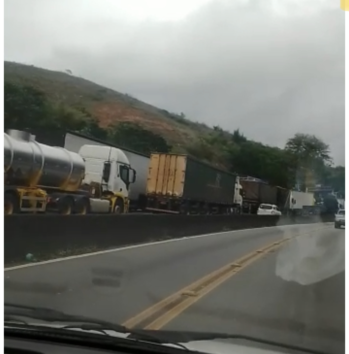Em Barra Mansa, bolsonaristas voltam a interditar a Dutra, no final da manhã, na Vila Ursulino. A Polícia Rodoviária Federal alega que os manifestantes não aceitam negociar a liberalização parcial ou de qualquer veículo. (Foto: Divulgação)