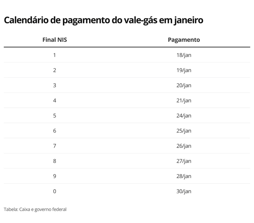 Os pagamentos serão feitos pelo número final do NIS. Nesta terça, começam a receber os beneficiários com NIS encerrado em 1. Em 31 de janeiro, o pagamento será destinado para quem tem NIS terminado em 0. Veja o calendário completo: