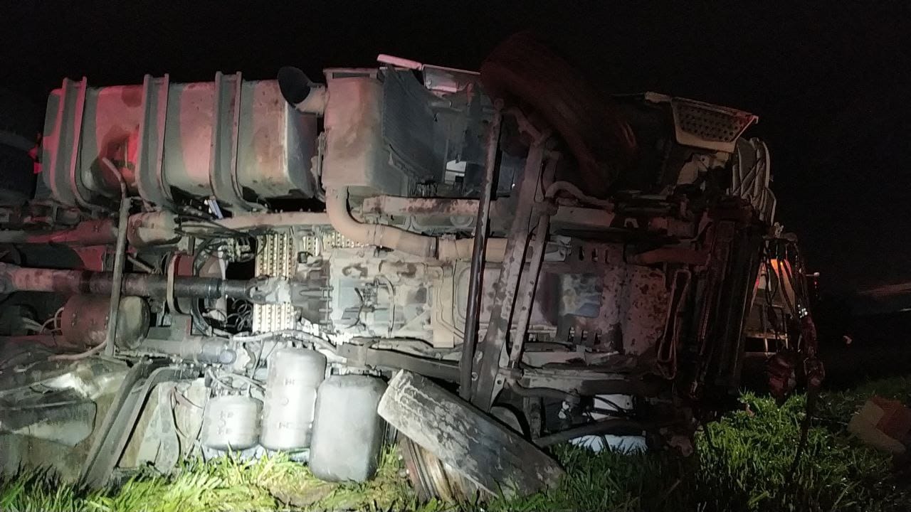 As informações foram passadas pela Polícia Rodoviária Federal. Segundo os agentes, a carreta perdeu o controle na curva colidiu contra a mureta Central e tombou. Um ônibus que vinha atrás, devido ao óleo na pista, não conseguiu frear e colidiu na carreta. Os feridos são o motorista da carreta e três passageiros do ônibus