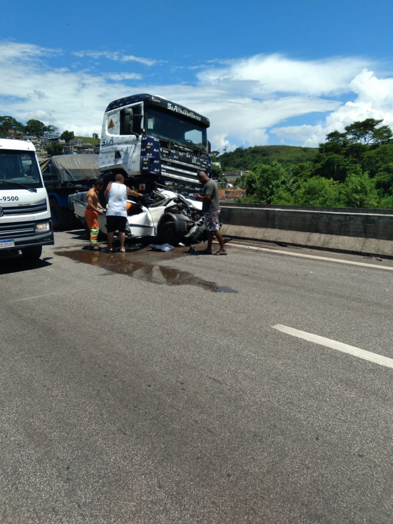 Uma batida entre uma carreta e dois carros registrada na tarde desta terça-feira (dia 22) interrompeu o trânsito de veículos na Dutra, em Barra Mansa. Segundo informações de testemunhas, há vítima presa nas ferragens.