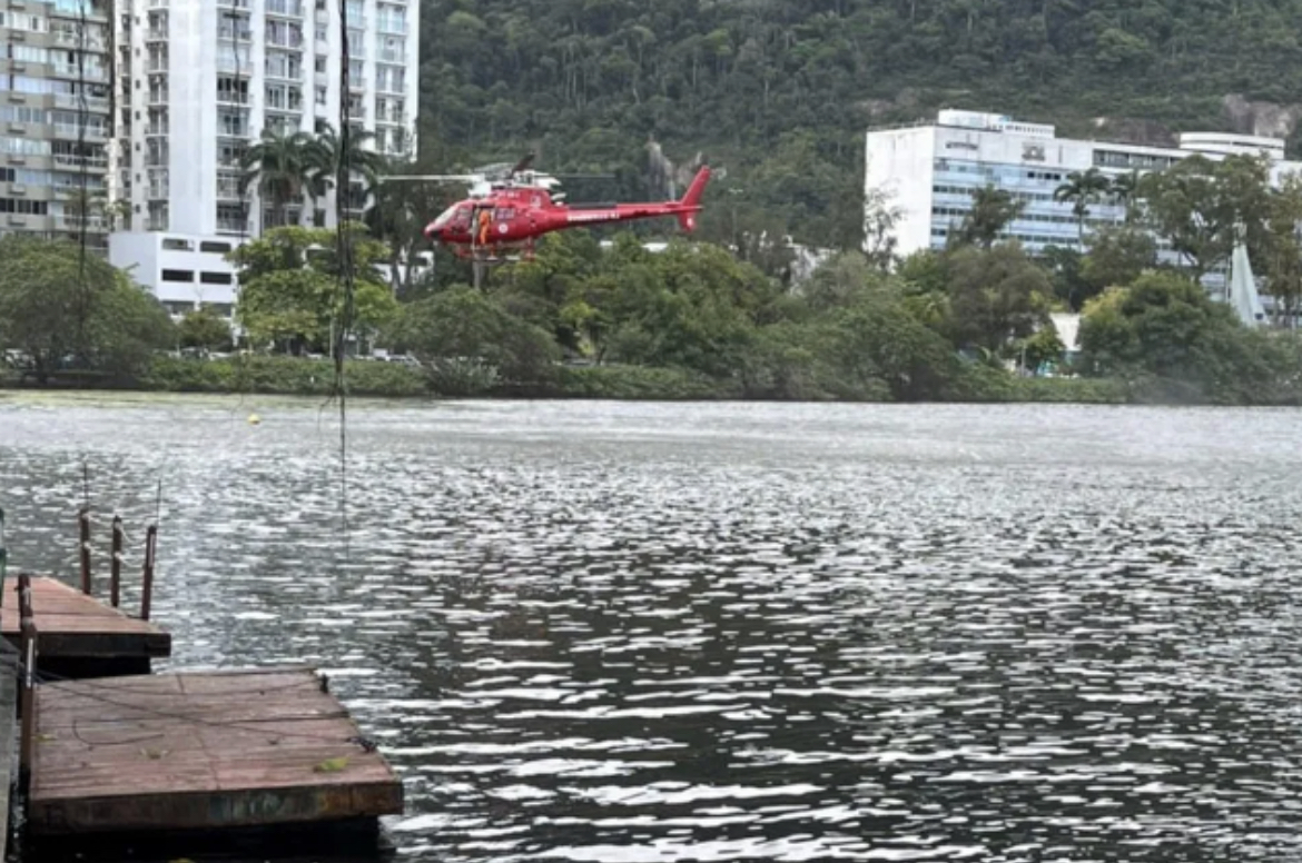 Um helicóptero caiu na tarde deste sábado (22) na Lagoa Rodrigo de Freitas, no Rio de Janeiro. Segundo os bombeiros, cinco pessoas foram resgatadas e não correm riscos.