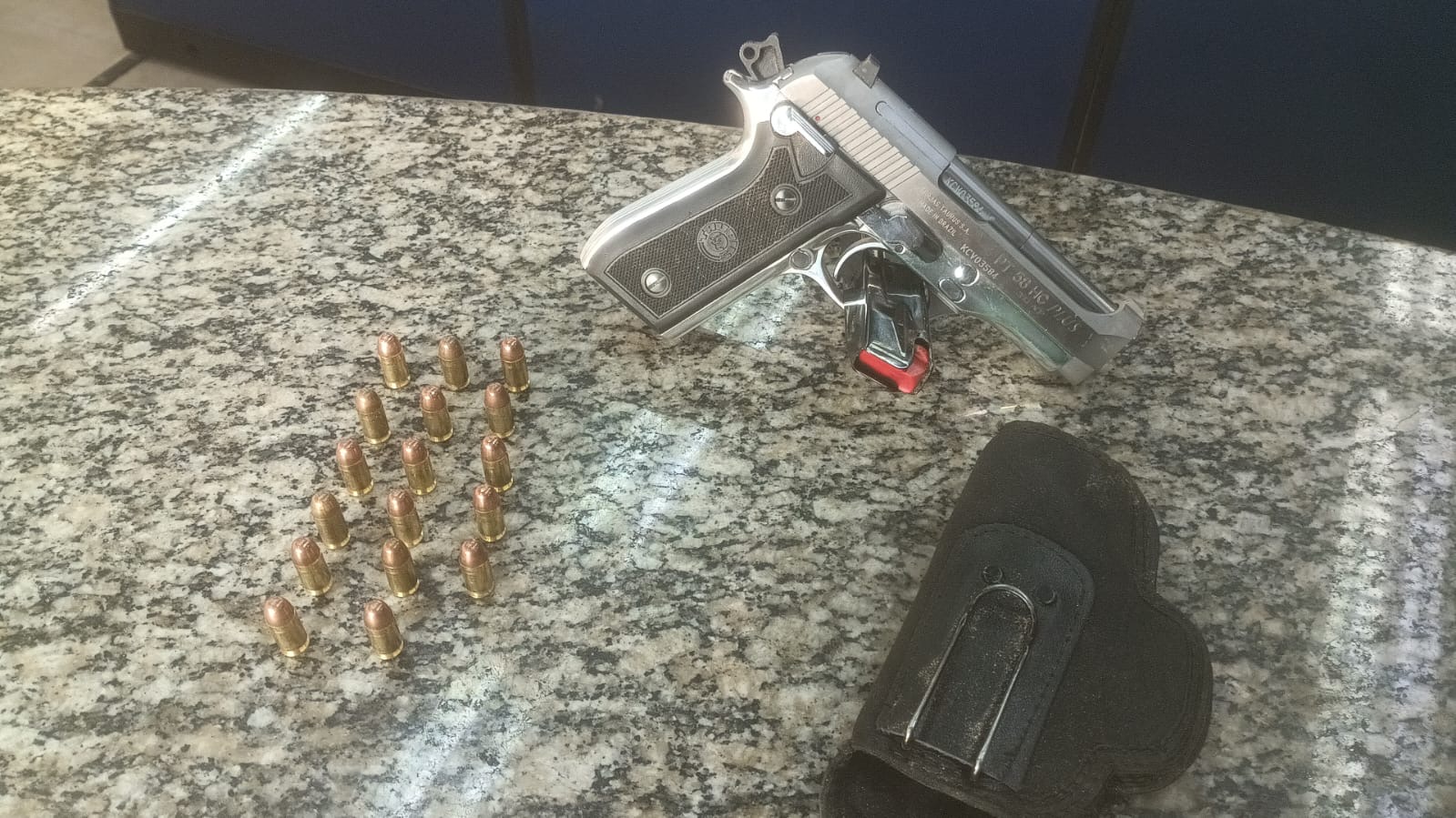 Chegando, os agentes encontraram o elemento descrito na denúncia. Antes de ser abordado, ele tentou jogar a arma – uma pistola – no Rio Paraíba do Sul. Porém, os agentes conseguiram localizar a arma. Ele recebeu voz de prisão e foi levado para a delegacia de Barra Mansa (90º DP).