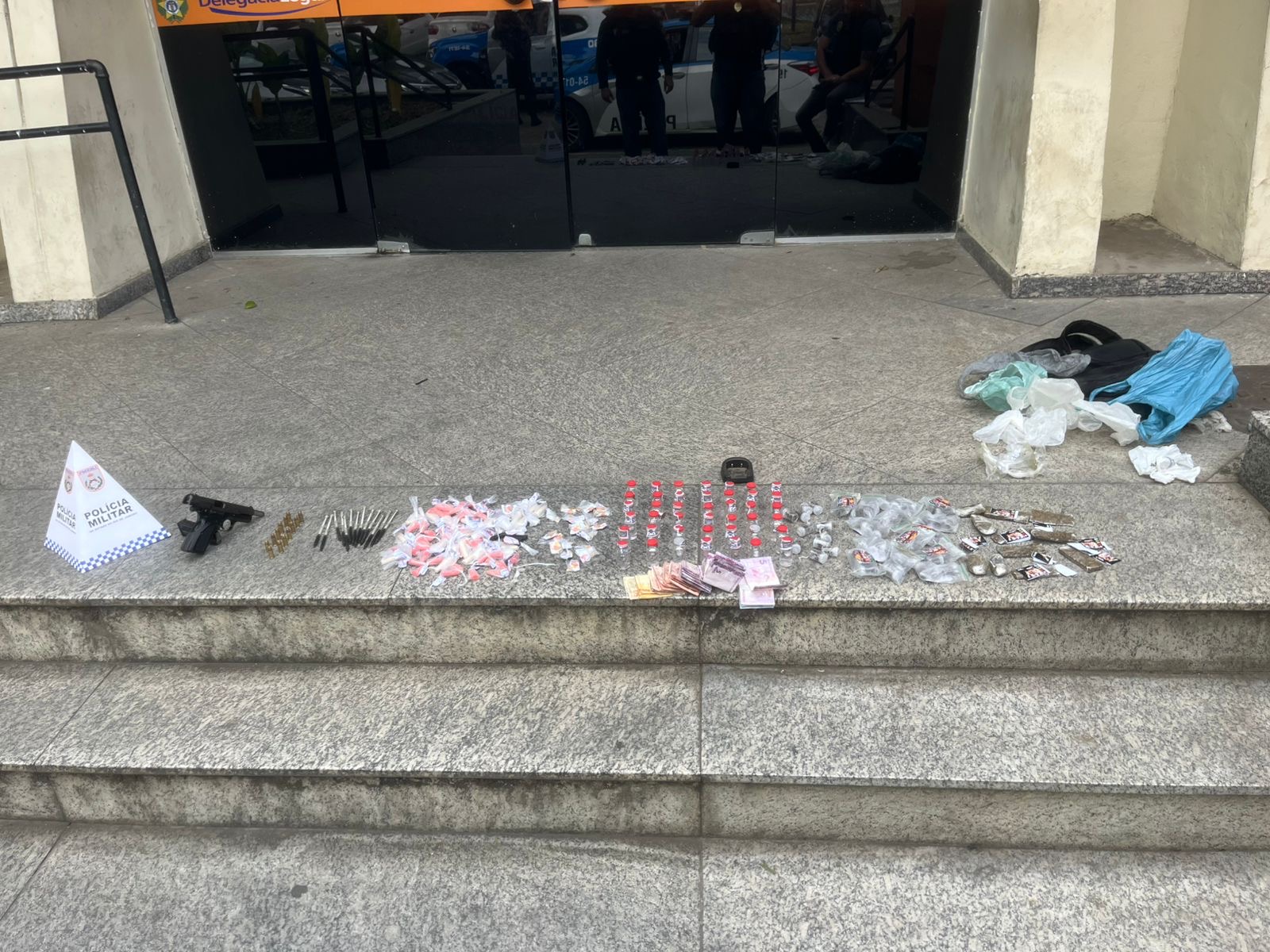 O suspeito, que já possui anotações criminais anteriores pelos artigos 33 da Lei de Drogas (11.343/06) e 121 do Código Penal (homicídio), foi conduzido à 89ª Delegacia de Polícia, onde foi autuado em flagrante pelos artigos 33 e 35 da Lei de Drogas, além do artigo 16 do Estatuto do Desarmamento (Lei 10.826/03).