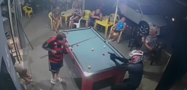 Imagens de câmeras de segurança do estabelecimento registraram o crime. A vítima aparece jogando sinuca, com outras 11 pessoas ao redor, até que um homem vestido de preto e usando capacete entra no local e atira quatro vezes à queima-roupa contra a vítima, que cai, enquanto as demais pessoas correm, em desespero. O assassino fugiu em seguida.