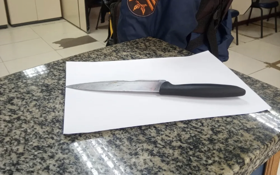 Diante do relato, o homem foi abordado por policiais. Durante uma revista, os agentes encontraram uma faca de cozinha com lâmina de 17 cm dentro da mochila.