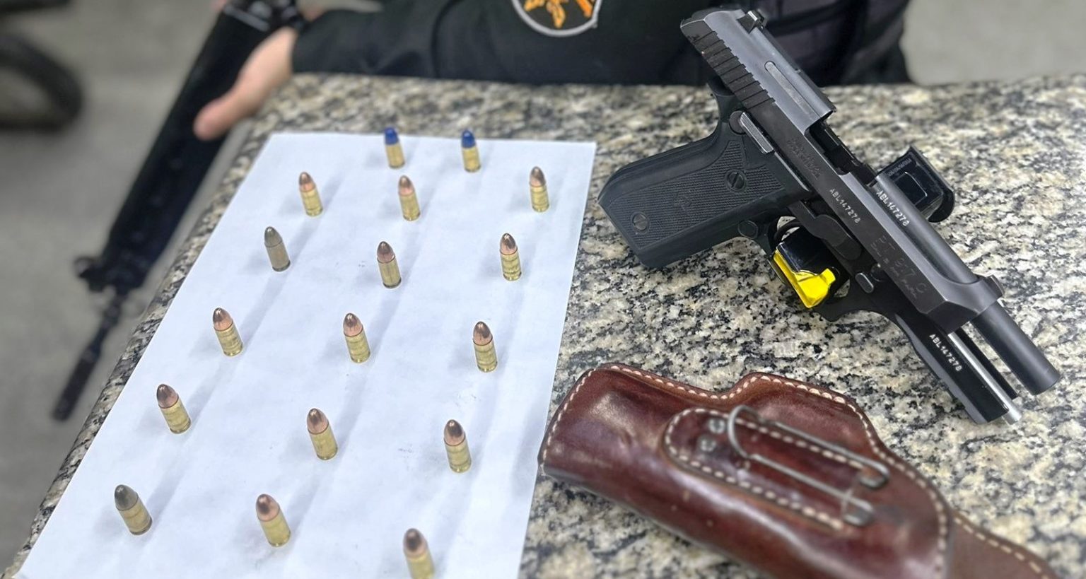 Ele estava de carro que foi abordado por agentes. Ao passar pela viatura, o motorista acelerou. No entanto, foi alcançado pelos agentes. Ele tinha na cintura uma pistola municiada com 17 balas.