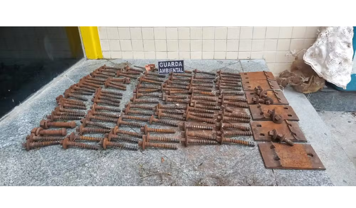 Segundo a Guarda Ambiental, com o suspeito, foram encontrados mais de 100 parafusos e seis placas de apoio dos trilhos.