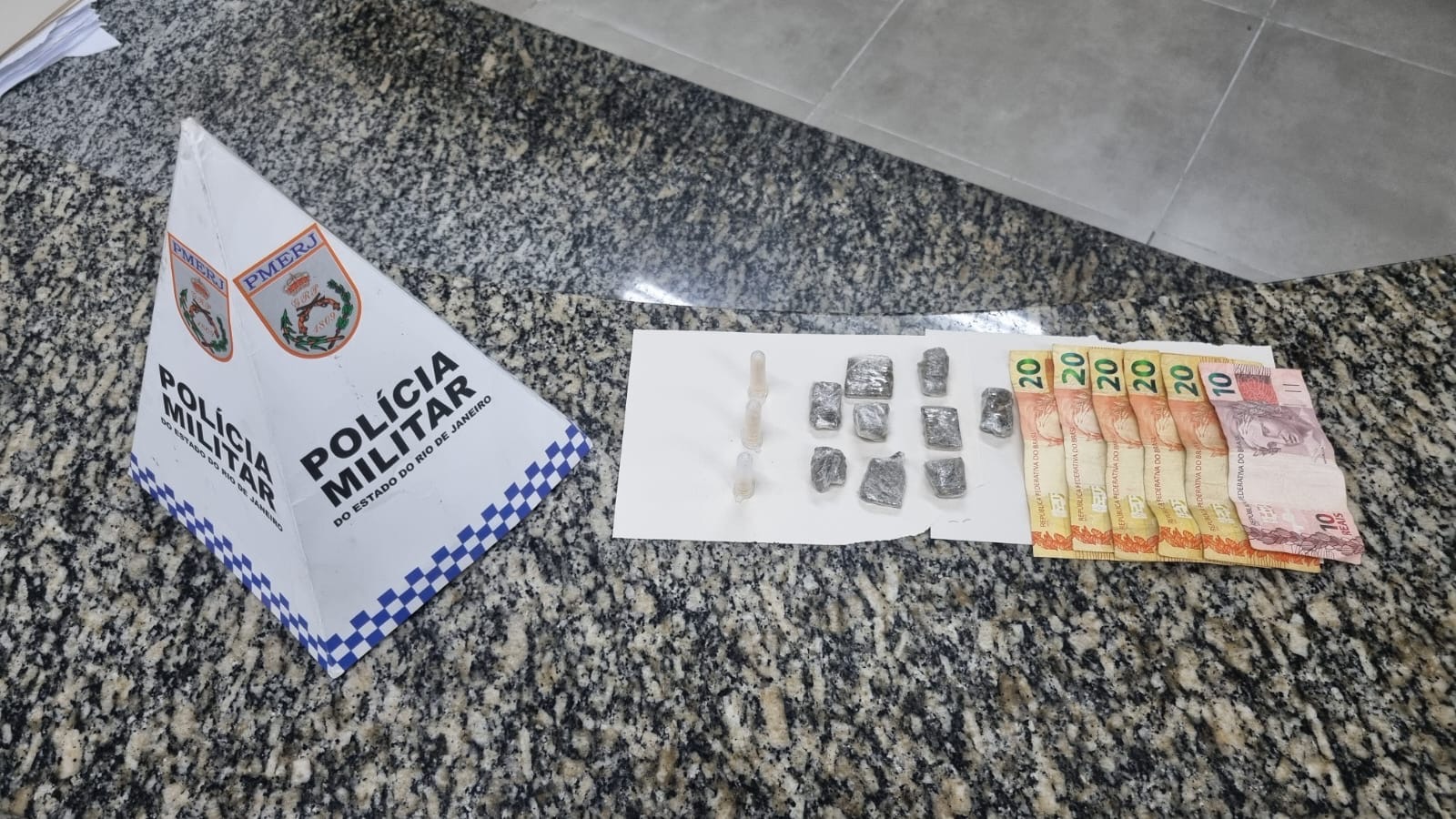 Os materiais apreendidos — três pinos de cocaína, nove trouxinhas de maconha e o dinheiro em espécie — foram encaminhados para perícia e ficaram à disposição da Polícia Civil.