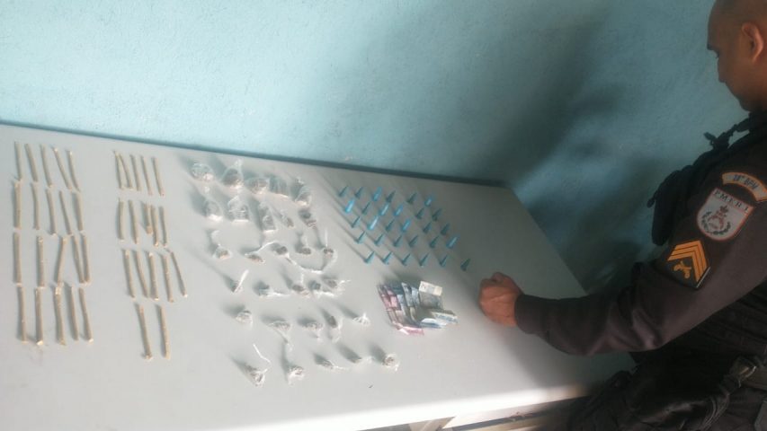 Na operação, ainda segundo a ocorrência policial, havia 30 trouxinhas de maconha, 37 cigarros da mesma droga e 30 pinos de cocaína. O caso foi registrado na delegacia e o suspeito permaneceu preso.