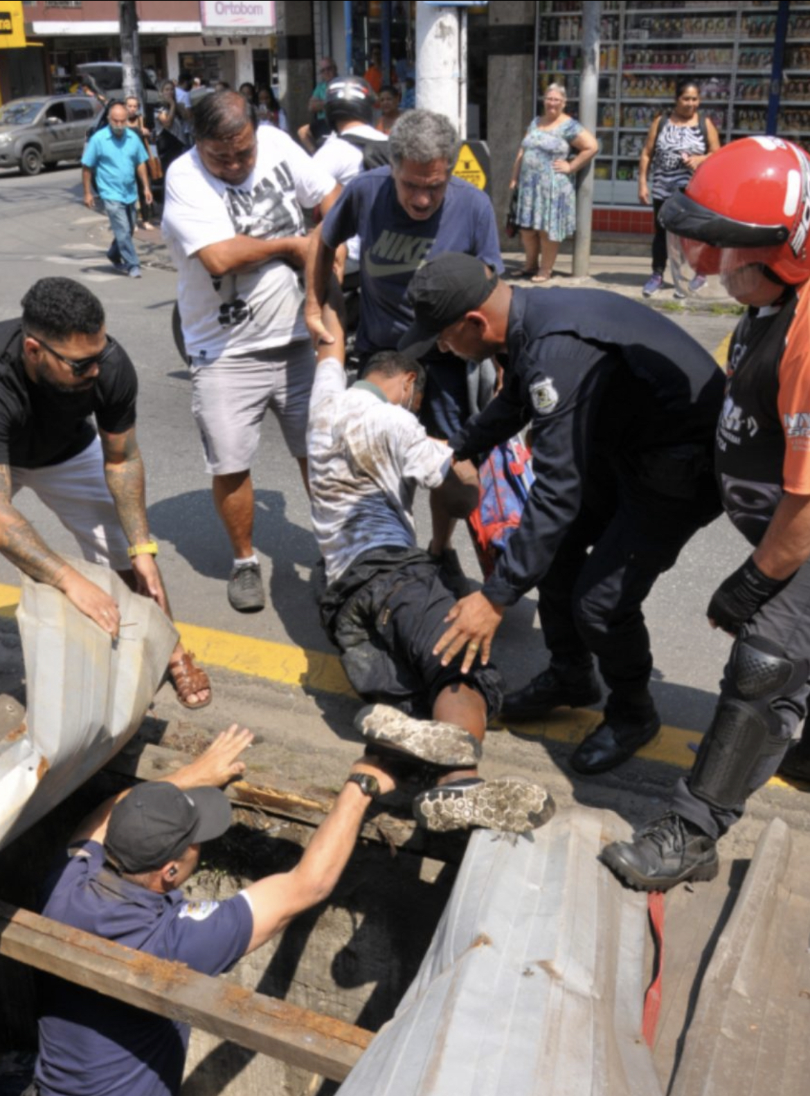 O homem caminhou até achar uma fresta para pedir socorro. Guardas municipais e populares ajudaram o homem e a ambulância do Samu foi comunicada.