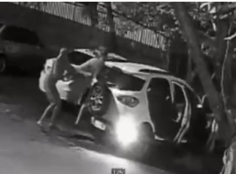 As imagens mostram o pai e o filho caminhando em direção ao carro estacionado. Eles entram no veículo quando os três autores saem de outro carro, estacionado ao lado do veículo que era alvo, e atiram contra as vítimas. Em seguida eles fogem. Populares que passavam pelo local tentam prestar os primeiros socorros.