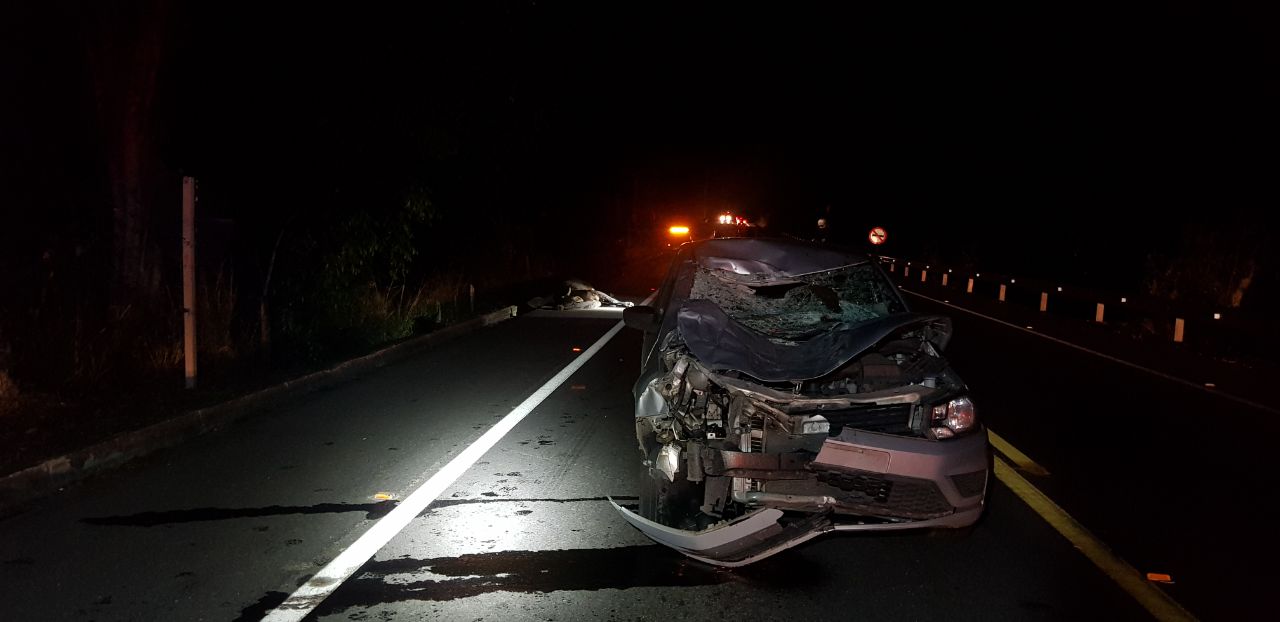 O estado de saúde do motorista não foi informado. A pista só foi liberada após a retirada do veículo e do animal morto do local.
