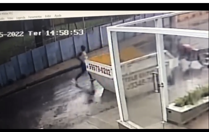 Os bandidos – um dele estava vestindo chinelo e outro magro — utilizaram uma caçamba de entulho para se esconder das câmeras de segurança e não levantar suspeita naqueles que passavam pelo local no momento do crime.