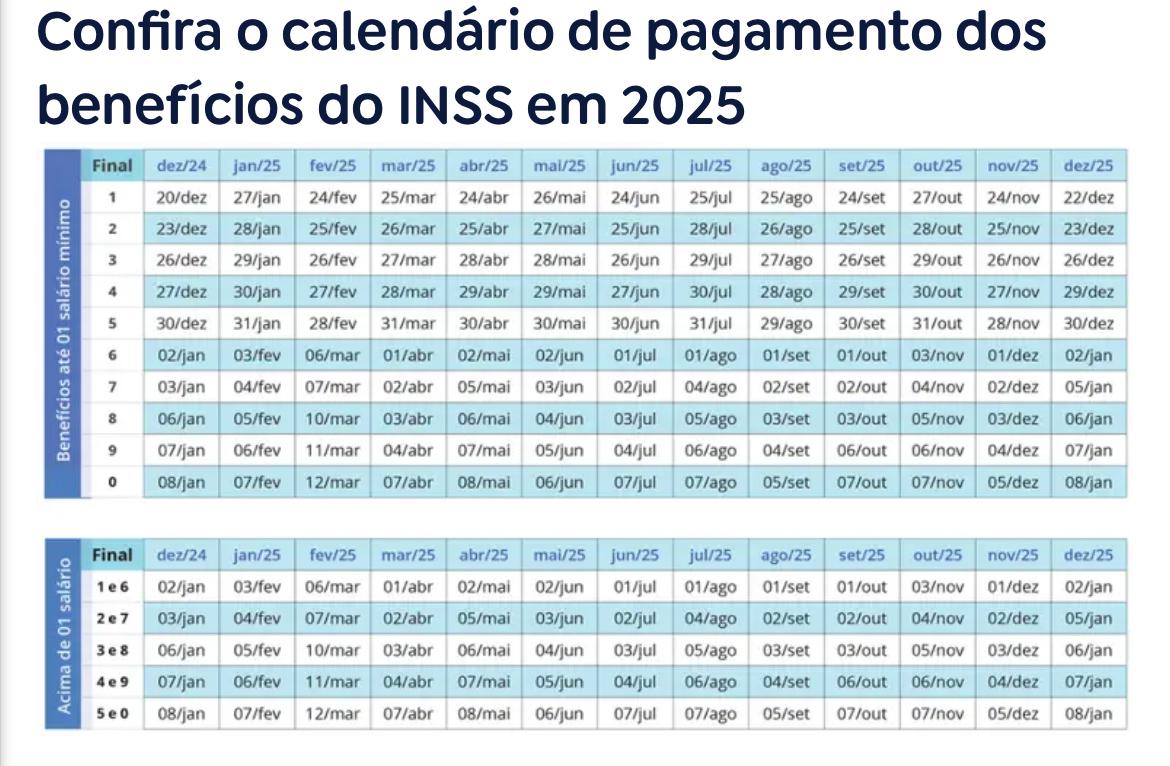 Os cerca de 40 milhões de beneficiários do Instituto Nacional do Seguro Social (INSS) já podem conferir a data de pagamento das aposentadorias, dos auxílios e das pensões em 2025. A autarquia divulgou, no último dia 18, o calendário de depósitos para todo o próximo ano.