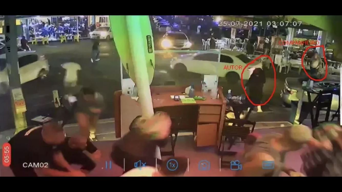 Na sequência, de acordo com a Polícia Civil, Luís Carlos foi para a entrada da boate, localizada perto do bar onde os três estavam. Os investigadores conseguiram recuperar imagens da dupla de suspeitos mostrando que estavam armados ainda no bar.