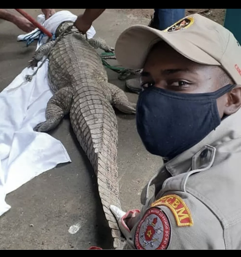 Um Jacaré-Açu de quase dois metros foi capturado na madrugada de terça-feira (29), em Vassouras, no Sul do Rio de Janeiro. O animal estava próximo de uma residência, no bairro Cananéia.