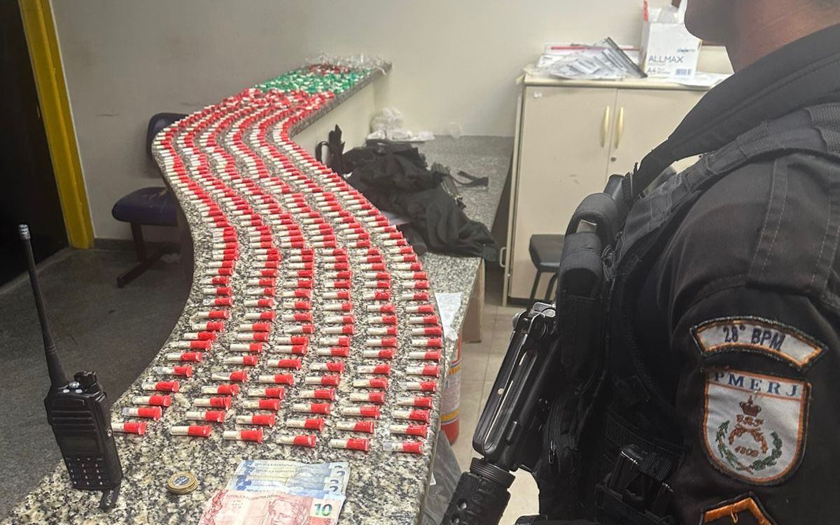 Chegando, eles confirmaram a informação e prenderam o rapaz. Com suspeito, os militares arrecadaram um rádio de comunicação e uma mochila contendo 660 pinos de cocaína, 118 pedras de crack e 43 sacolés de maconha.