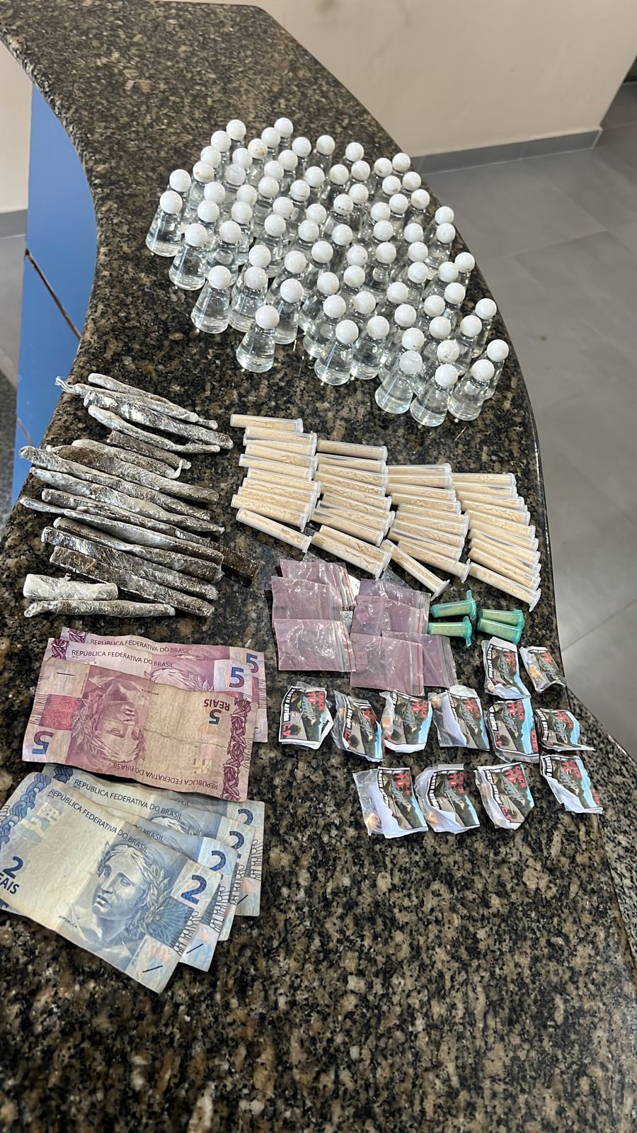 Com ele foram apreendidos 77 frascos de loló, 44 pinos de cocaína, 17 tiras de maconha, 12 pedras de crack e sete comprimidos de ecstasy.