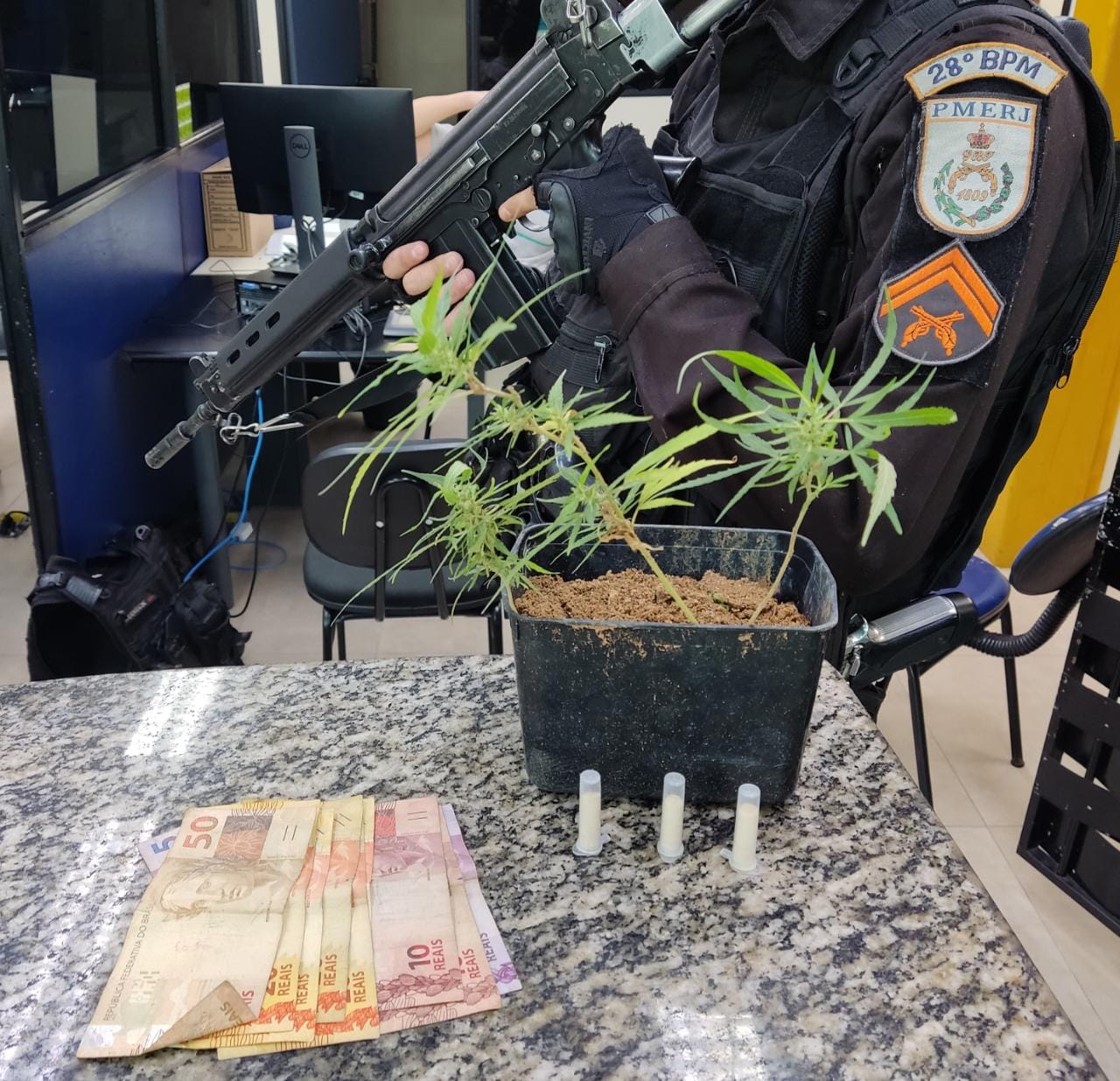 Os policiais indagaram ainda se havia mais ilícitos com o rapaz, que apontou que tinha pés de maconha em sua casa – três mudas. Todo o material e o suspeito foram levados para delegacia de Barra Mansa (90°DP), onde o caso foi registrado.