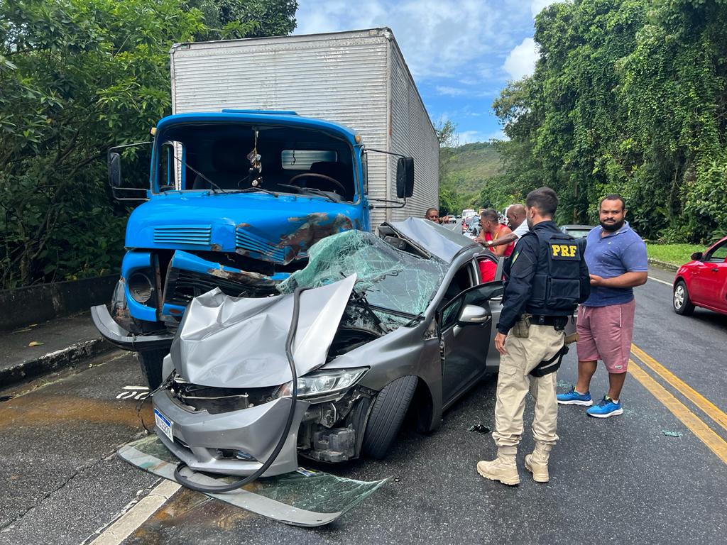 Um acidente entre um caminhão e um carro deixou jovem de 20 anos gravemente ferido na manhã desta sexta-feira (25) em Angra dos Reis. A vítima estava no carro.