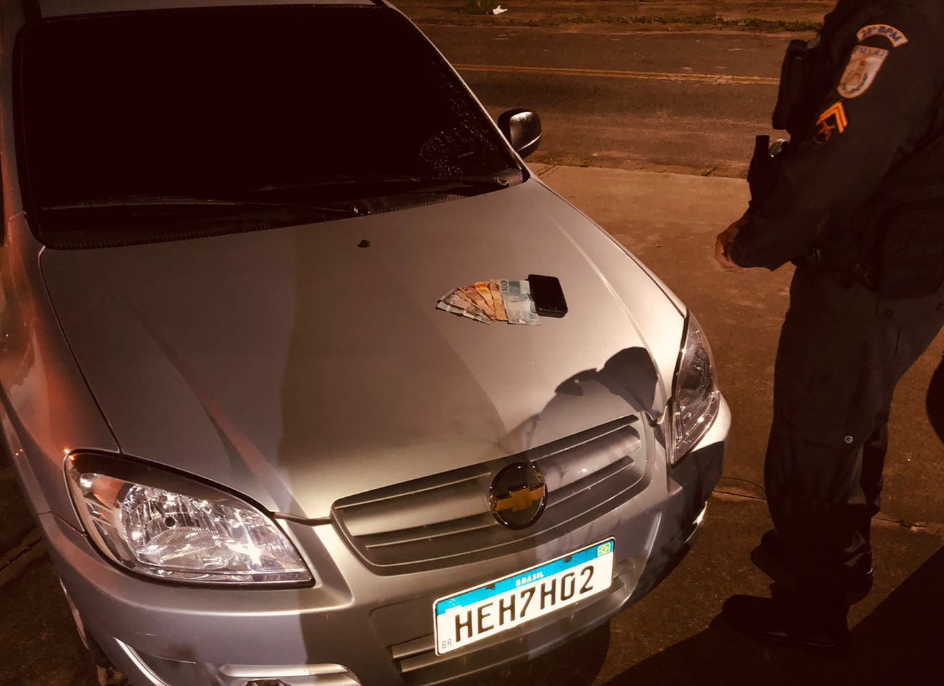 Os policiais militares receberam uma denúncia sobre o fato e foram verificar. Chegaram e encontram o carro – de placa HEH-7H02. Ao verificar, perceberam se tratava de um veículo clonado. E ainda: havia um registro de furto na capital paulista.