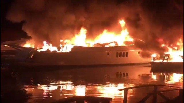 As imagens mostram que o fogo consumiu as embarcações. Os bombeiros dos quartéis de Angra e do Frade foram acionados às 5h20min.