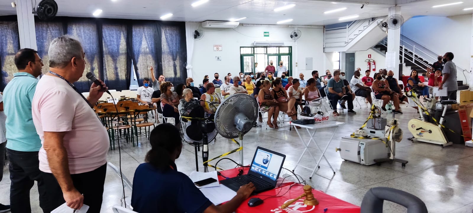 Dezenas deinteressados no leilão compareceram e puderam arrematar itens com preços bem abaixo dos de mercado, como cadeiras universitárias, aparelhos de ar condicionado, máquinas de costura e outros. Muitos dos produtos eram usados em projetos que, por lei, não podem mais ser desenvolvidos pela Associação dos Aposentados, como as cadeiras escolares.