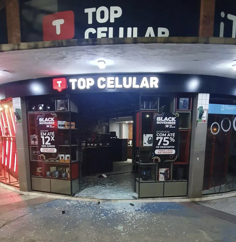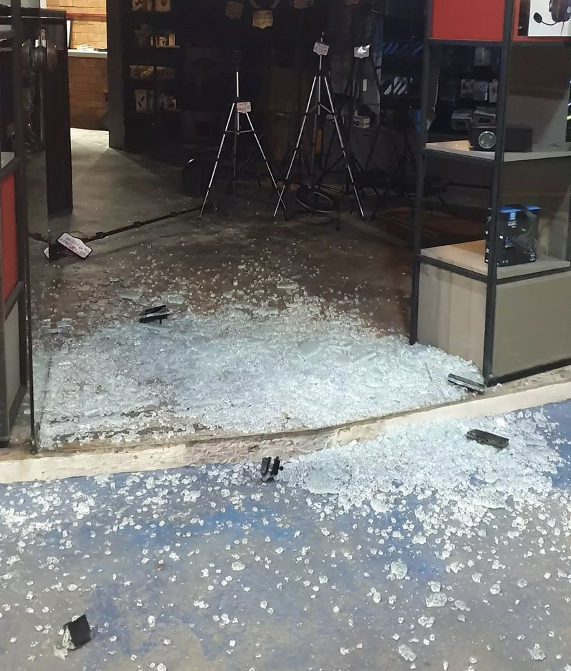 Nas redes sociais, dono do estabelecimento disse que foi comunicado pela empresa de segurança por volta de meia-noite. Os bandidos quebraram a porta de vidro da loja.