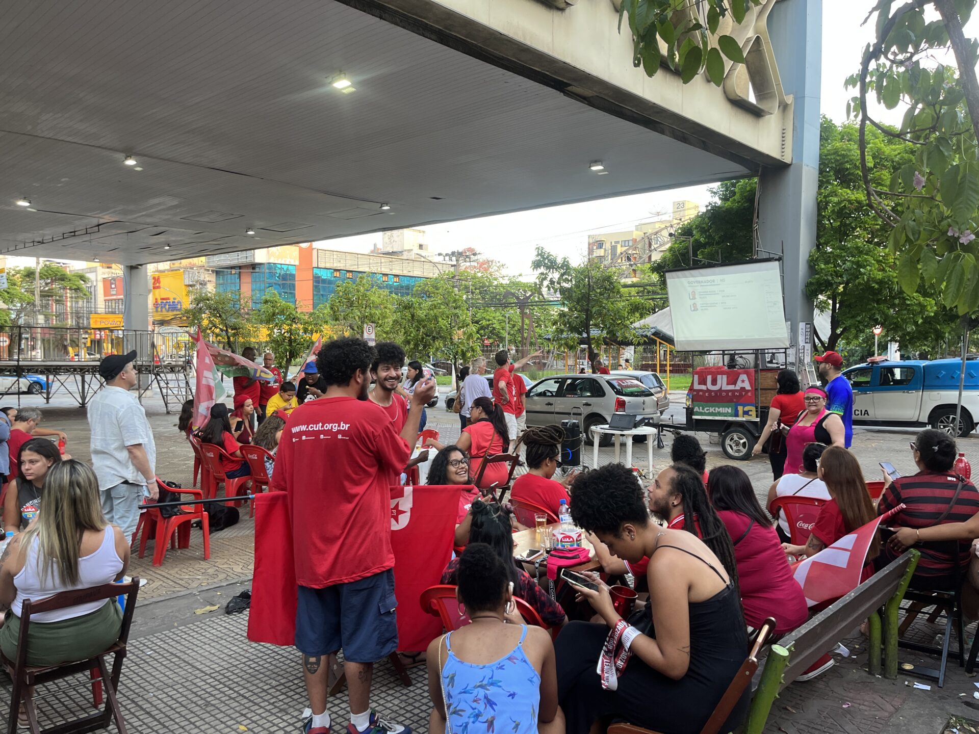 Um grupo de apoiadores de Lula se reúne no final na tarde desta domingo (30) em Volta Redonda. Eles colocaram um telão embaixo da biblioteca municipal, na Vila Santa Cecília.