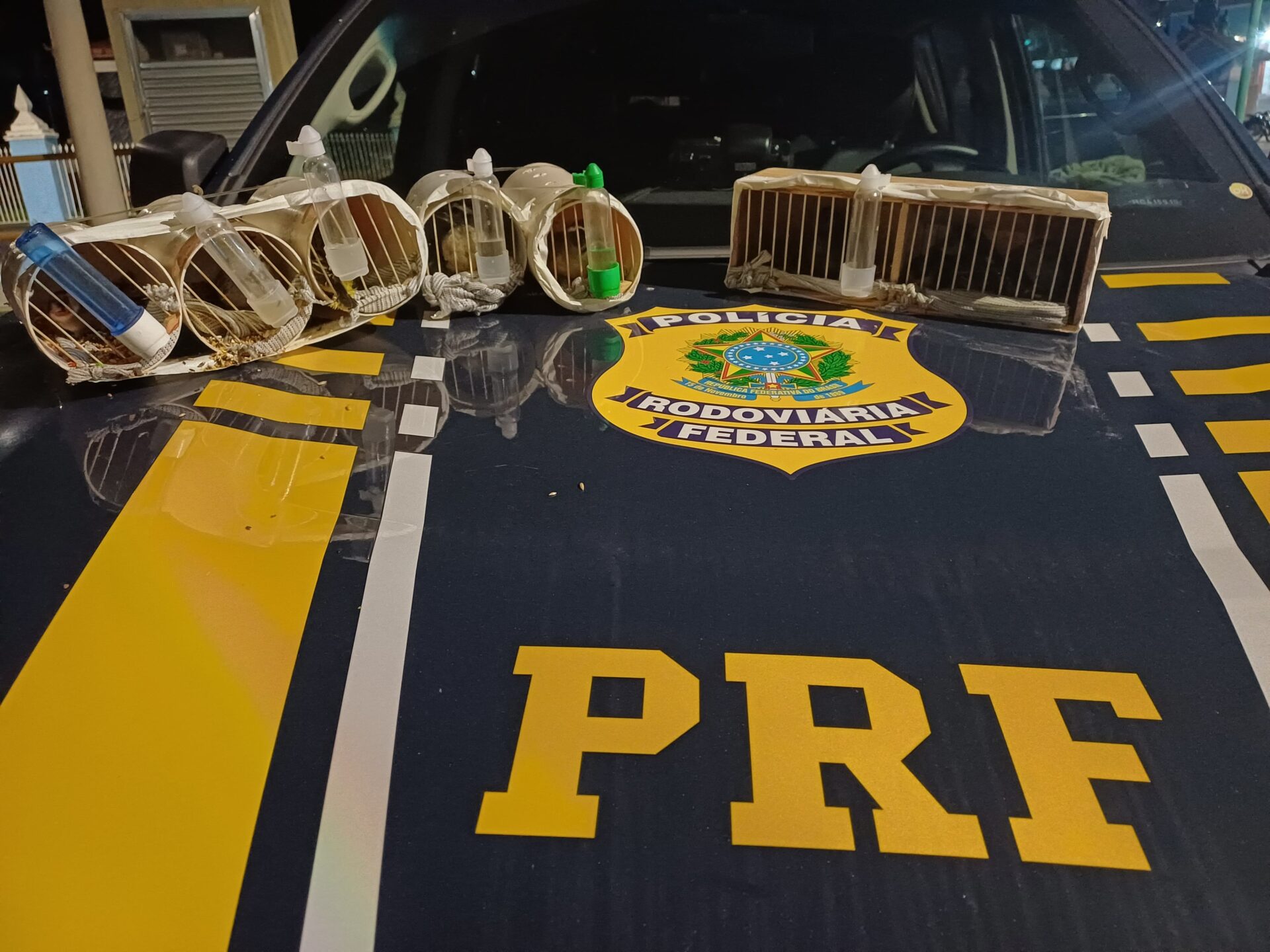De acordo com a PRF, embaixo do banco do motorista e passageiro, foram encontrados 11 pássaros de, ao menos, seis espécies diferentes da fauna silvestre. Algumas aves estavam machucadas, sem água para beber e confinadas em um espaço sem ventilação.