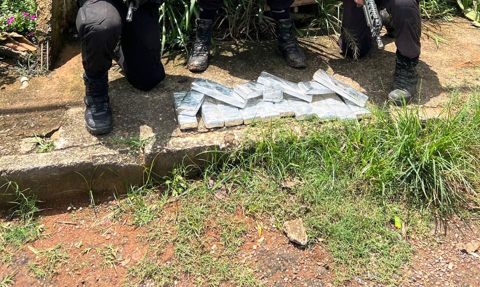 A maconha estava dividida em tabletes com papel alumínio. Os policiais fizeram ronda pela localidade, mas nenhum suspeito foi localizado. O material foi levado para a delegacia, onde o caso foi registrado.