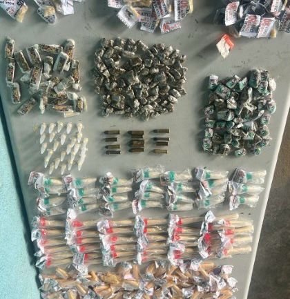 Dentro de uma sacola plástica, foram localizados 308 pinos de cocaína, 190 pedaços de maconha e 93 pedras de crack, além de 13 munições de calibre 38. O material e as drogas foram levados para a delegacia de Volta Redonda (93º DP), onde o caso foi registrado.