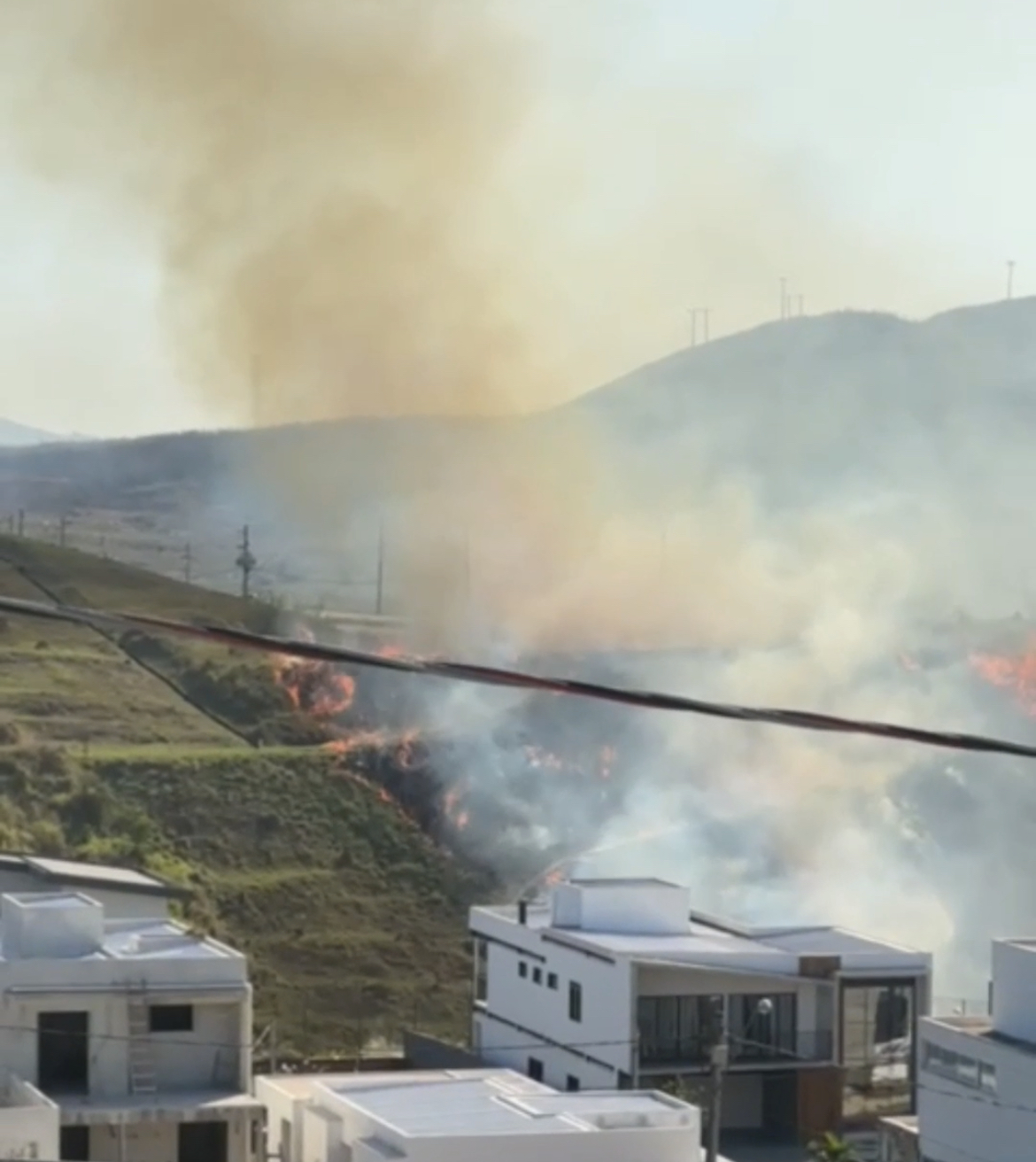Um fogo atingiu a tarde desta segunda-feira (11) uma área de mata próximo ao Aphaville, condomínio de luxo de Volta Redonda, que fica na Rodovia do Contorno. As chamas chagaram próximas as residências.