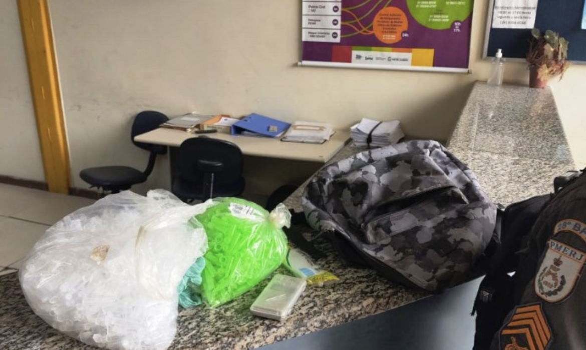 Na operação, foram apreendidos 5,1 mil pinos vazios, 100 pinos de cocaína e uma balança digital. O material estava numa mochila que estava numa escada de um imóvel. Nenhum suspeito foi preso e caso registrado na delegacia de Pinheiral (101º DP).