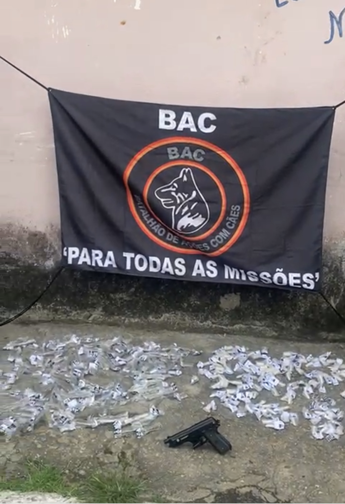 Na Baixada da Olaria, os policiais foram recebidos a tiros e revidaram com cinco disparos de fuzil. Nenhum policial e nem marginal ficaram feridos na troca de tiros. Em ato continuo, a BAC teve a atenção voltada para um suspeito e os animais sinalizaram que embaixo de um veículo estacionado havia alguns materiais suspeitos.