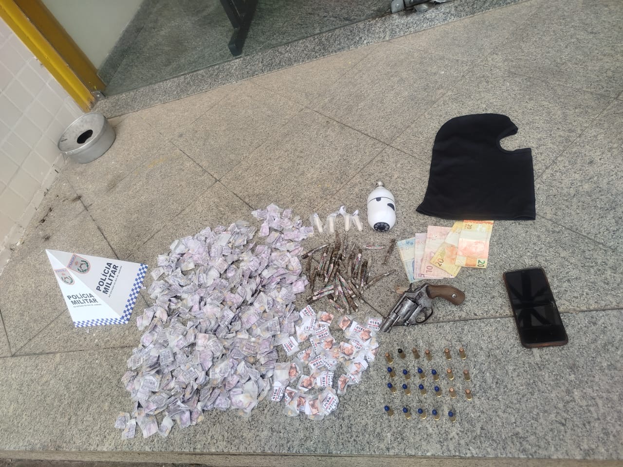 Durante as buscas, os policiais encontraram sob o telhado do quintal: