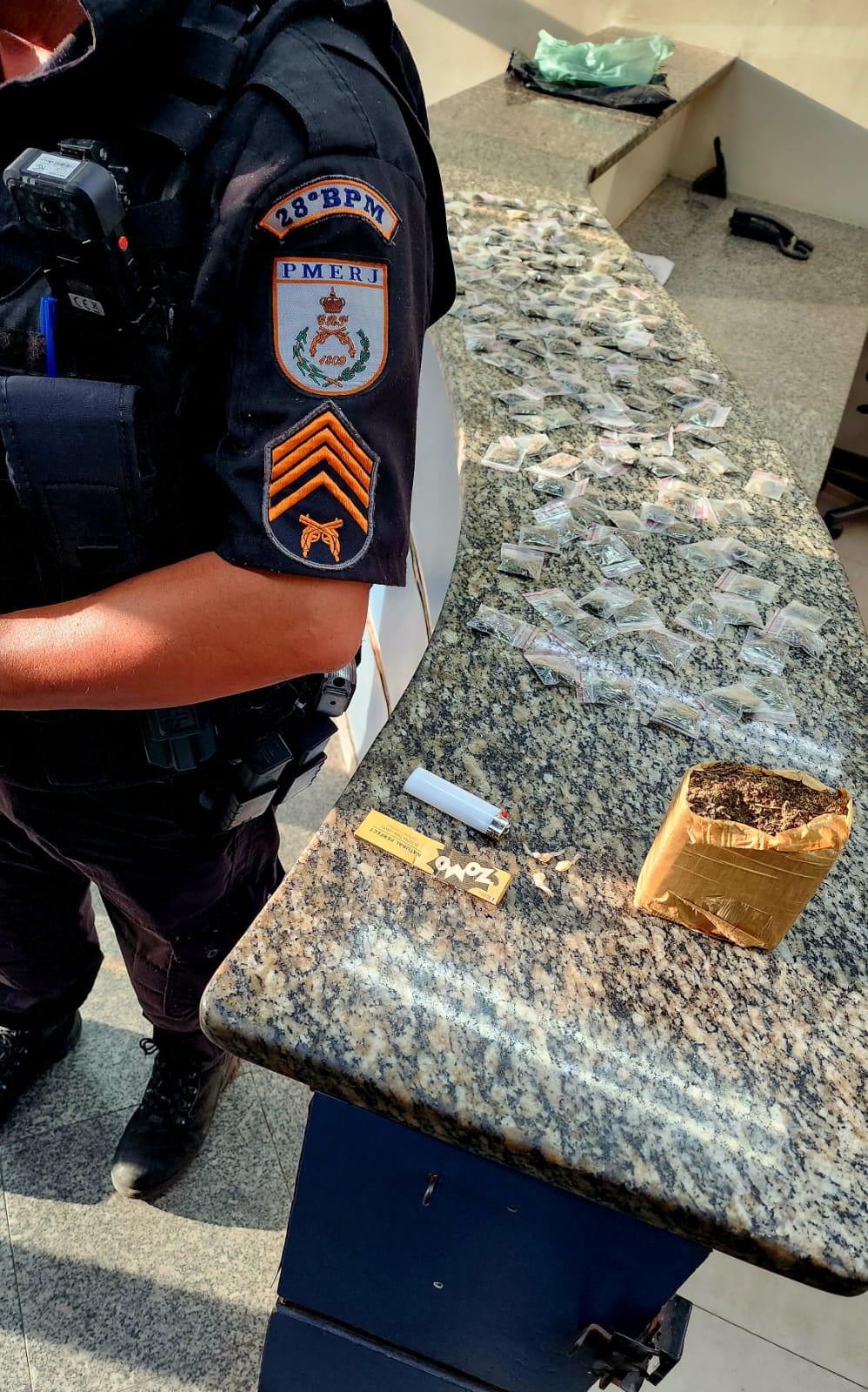 Chegando, os agentes encontraram o suspeito e fizeram a revista pessoal. Com o jovem, foram encontrados 13 tiras de maconha e outras três pedras de crack. Questionado se havia mais entorpecentes, ele confirmou e levou os policiais até uma área de mata.