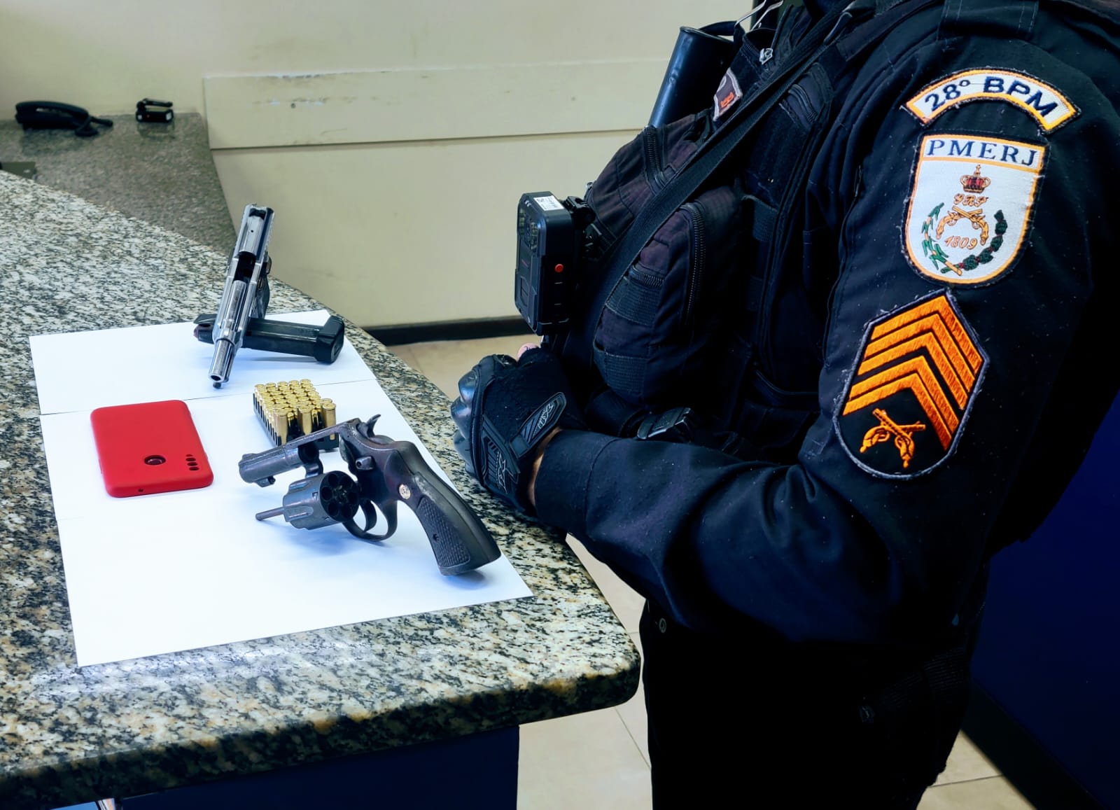 Um menor de 16 anos foi apreendido na tarde desta segunda-feira (11) com duas armas – um revólver 38 com seis munições e uma pistola com 39 munições intactas – em Barra Mansa. O fato ocorreu. O caso ocorreu no bairro Cotiada quando os policiais foram cumprir um mandado de busca e apreensão do menor.