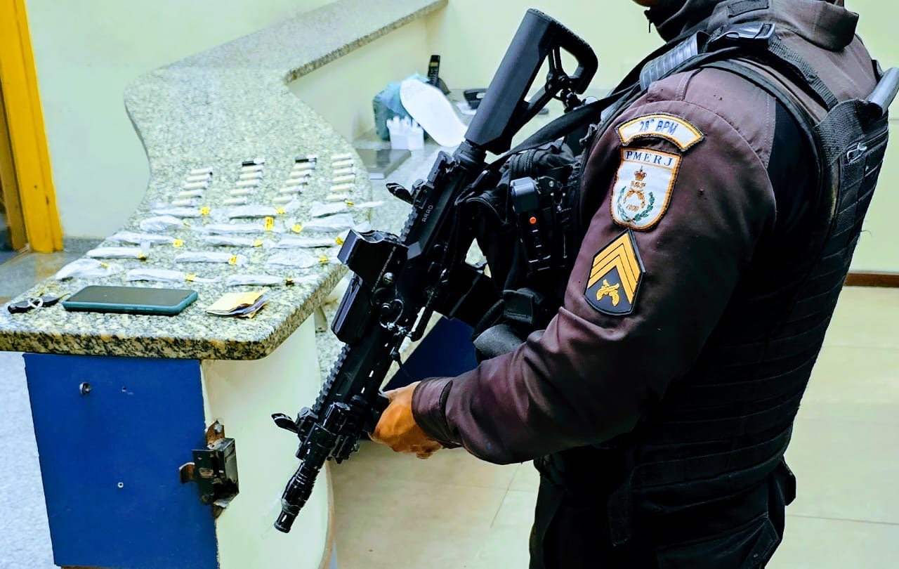 Chegando, os agentes observaram que a dupla estava numa movimentação de tráfico – utilizando uma motocicleta para entregar as drogas aos usuários. Assim, os agentes fizeram o cerco e, quando os dois adolescentes estavam com uma sacola, foi feita a abordagem. Com eles, havia pinos de cocaína e maconha – foram apreendidos ao todo 23 pinos de cocaína e 15 tiras de maconha.