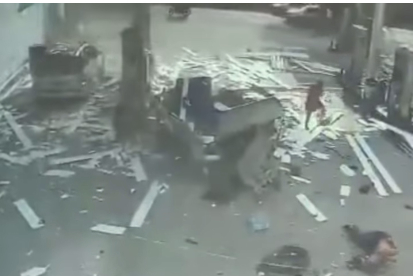 O carro ficou destruído, assim como a cobertura sobre as bombas de combustível do posto. Nenhum frentista ficou ferido.