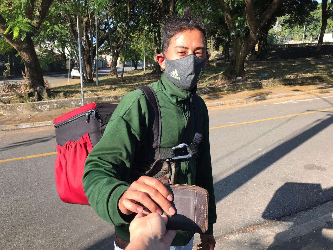 Os dois combinaram o encontro. O jovem motoboy, que trabalha há dois anos na profissão, fez questão de levar até a casa do dono da carteira.