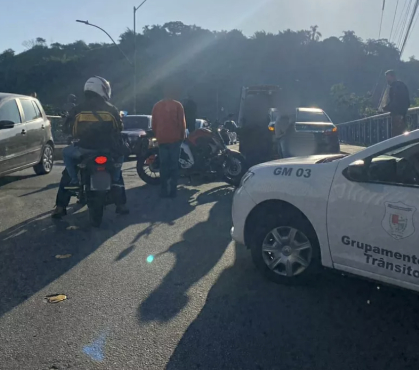 Um motociclista ficou ferido em uma batida com um carro na manhã desta segunda-feira (23) em Barra Mansa (RJ). O acidente aconteceu na Ponte Nilo Peçanha (Ponte dos Arcos), que liga o Centro ao bairro Ano Bom.