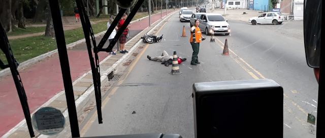 Um motociclista ficou ferido na manhã desta segunda-feira (7) em Volta Redonda. Ele se colidiu com um carro na Avenida Adalberto de Barros Nunes (Beira-Rio).