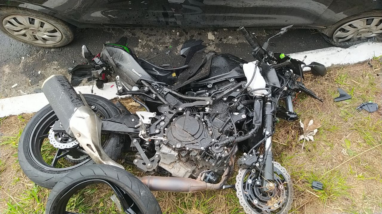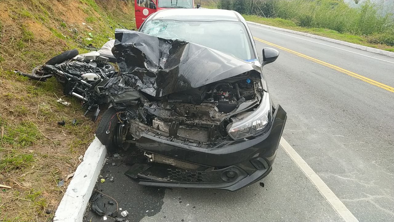 Segundo os agentes federais, o motociclista pilotava uma Kawasaki 400c quando atingiu um carro de passeio (Argo). A moto subia a serra e o veículo de passeio descia no sentido contrário.